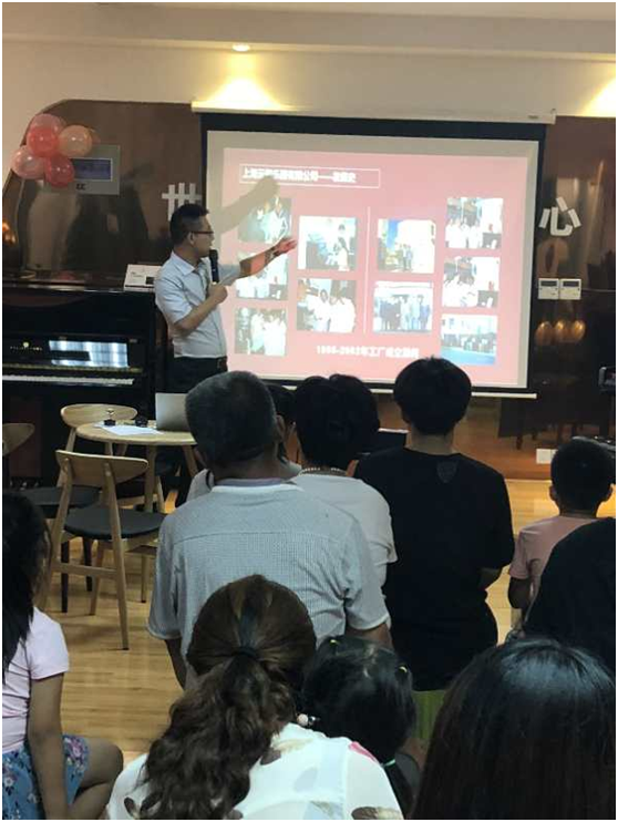 上海云熙乐器有限公司的连总给客户讲解公司发展史。